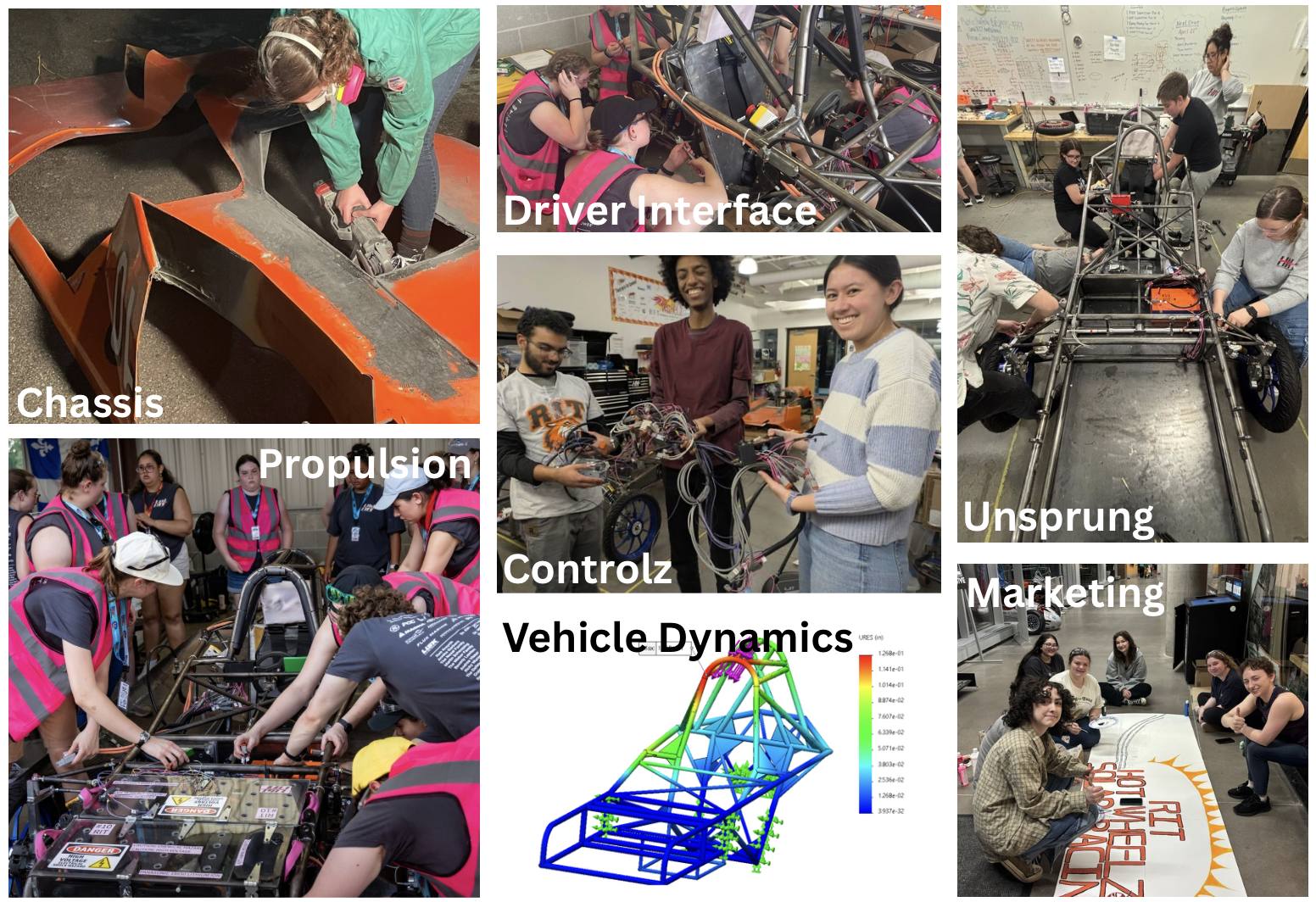 Chassis is responsible for the structural foundation and body of the vehicle. They design and weld the steel frame in-house. They utilize carbon fiber and fiberglass to create composite aerodynamic shells.
